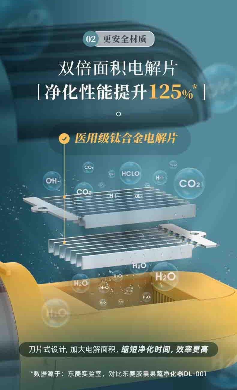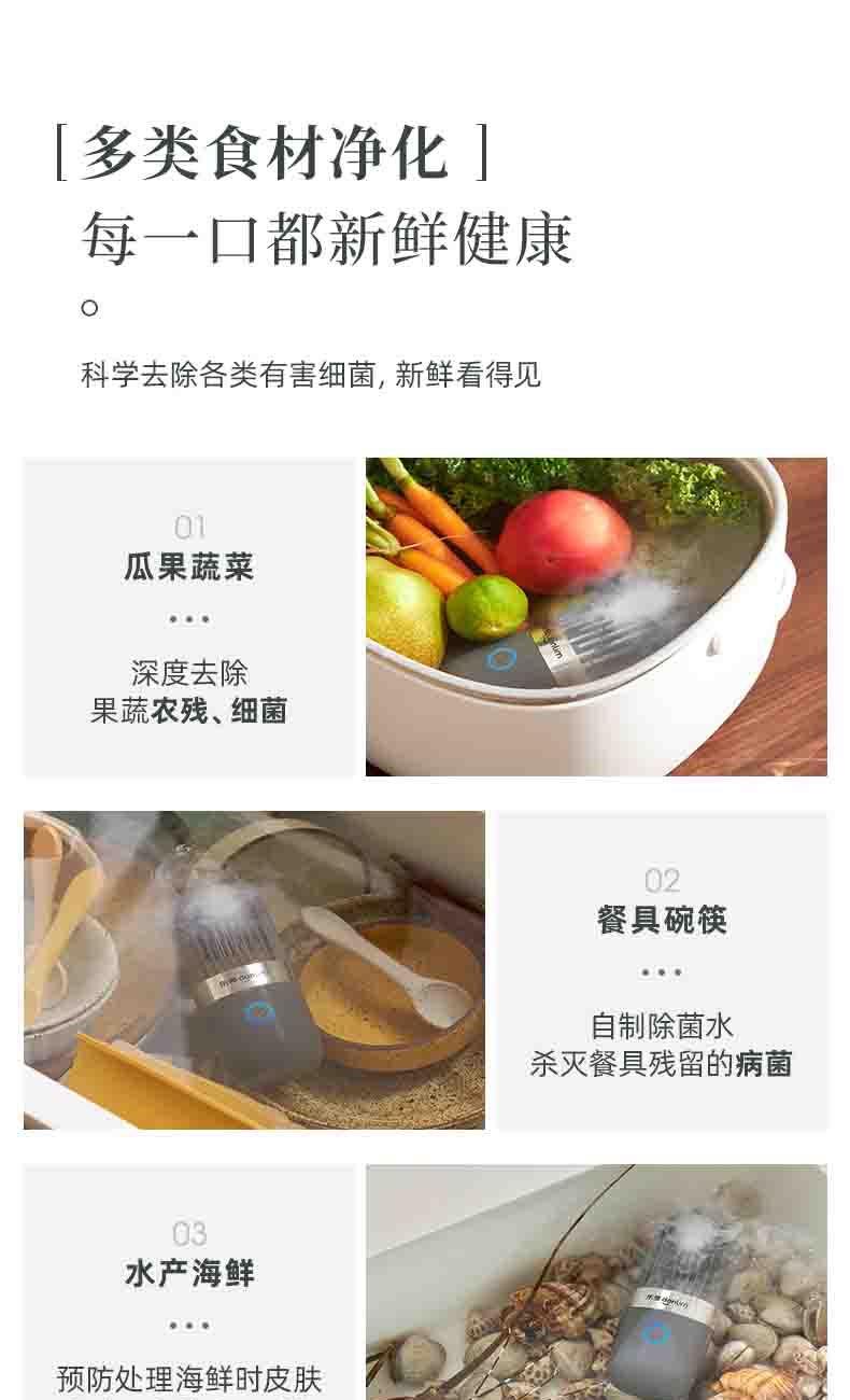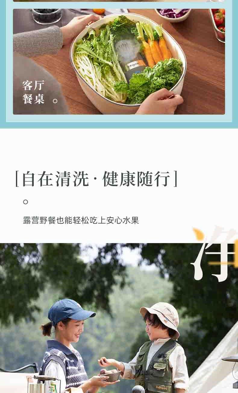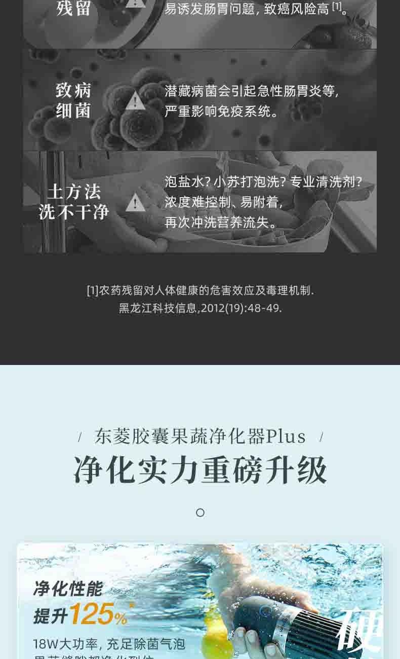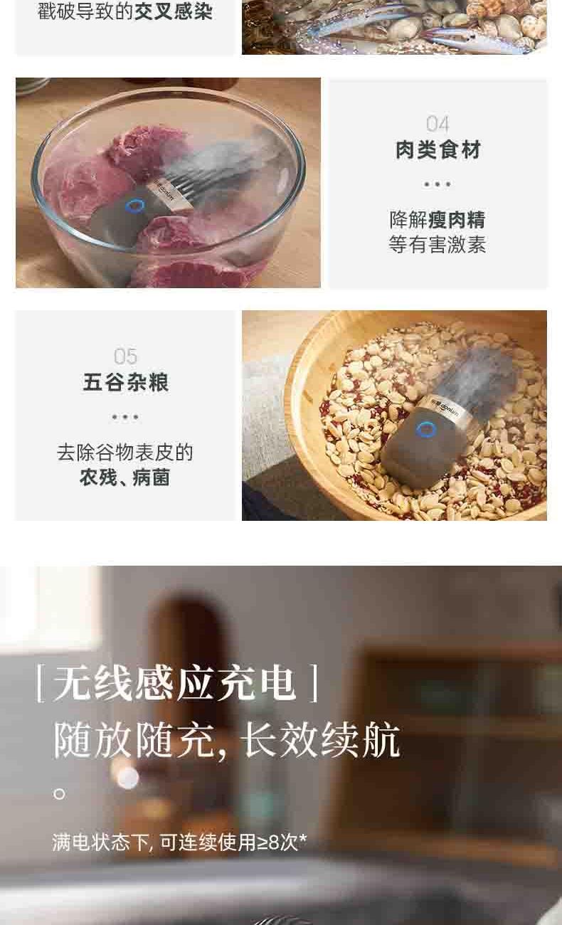 电池容量:2200mAh 功率:18W 毛重:0.52kg 产品尺寸:100*100*170mm 包装尺寸:214*152*164mm 默认每次工作=6分钟(3-5L容量的水)充满电可适用≥8次1.羟基技术,0添加0耗材,深度去农残 2.18W大功率充足气泡,6分钟净化备餐效率高 3.机身轻松可拆洗,从里到外真正干净